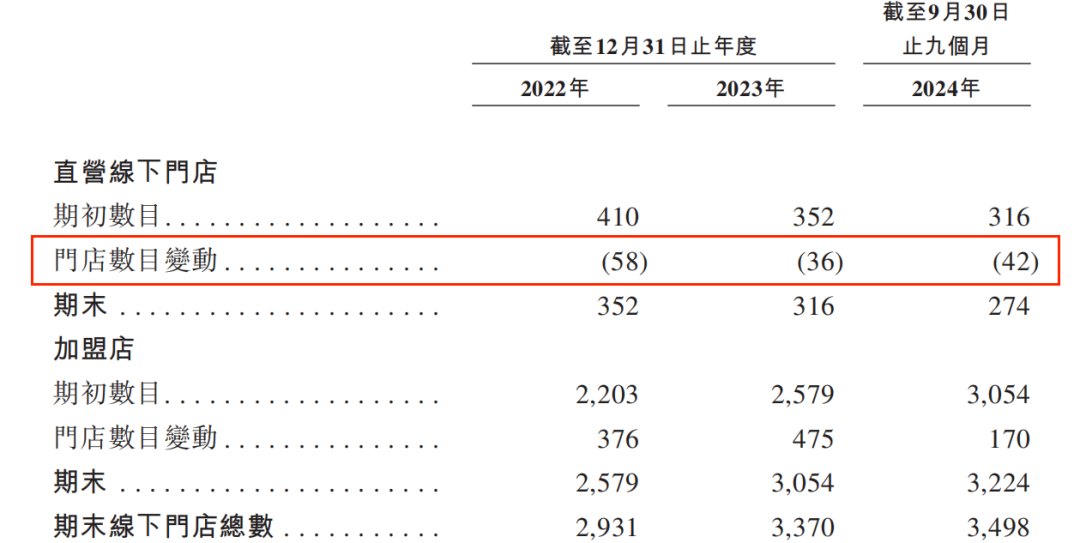 八马茶业的门店(包括直营店及加盟店)总数由2022年初的2613家增至截至2024年9月30日的3498家,其中加盟门店数量由2203家增至3224家,直营门店数量却连年减少。