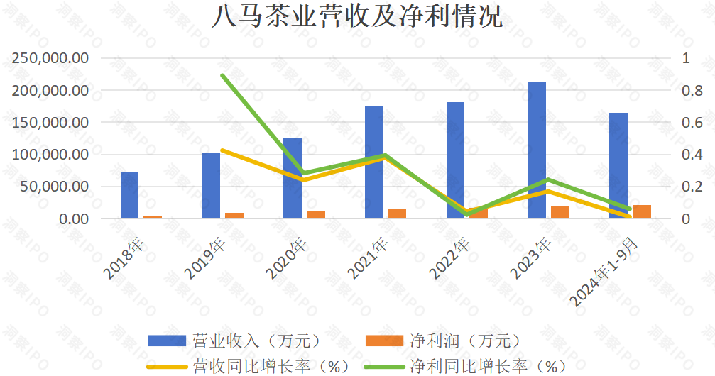 2022年、2023年及2024年1-9月(“报告期”)八马茶业分别实现营业收入18.18亿元、21.22亿元及16.47亿元,2023年及2024年1-9月分别同比增长16.77%及0.95%。