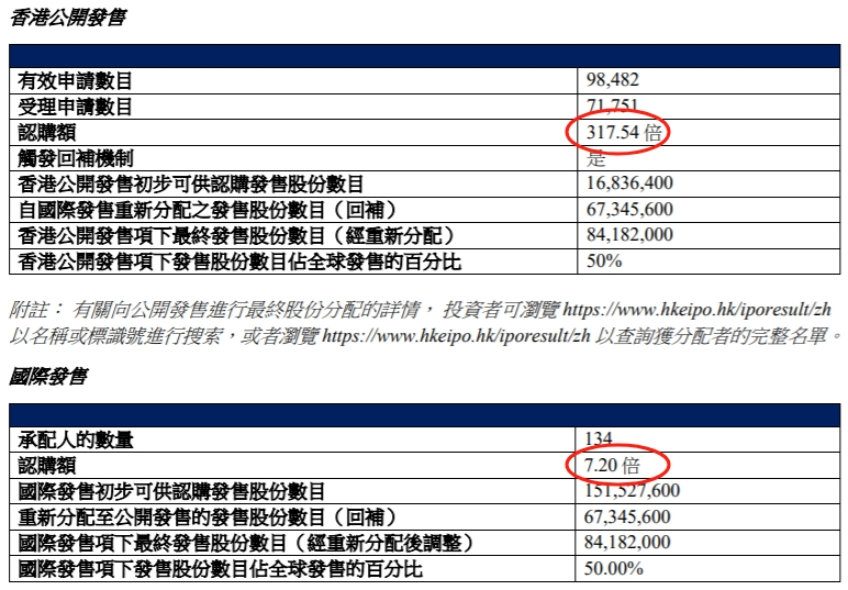 有了一众行业大咖的支持背书,本次绿茶集团IPO香港公开发售获317.54倍认购,国际发售获7.2倍认购,也创下今年港股消费类IPO的最高纪录。