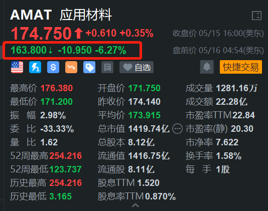 格隆汇5月16日|美国半导体设备制造巨头商应用材料(AMAT.US)盘前跌超6%。消息上,财报显示,截至4月27日的第二财季,公司营收同比增长7%至71亿美元,略低于分析师平均预期的71.3亿美元,调整后每股收益2.39美元则高于分析师预测的2.31美元。展望未来,预计第三财季营收将在72亿美元上下浮动5亿美元区间。虽然该预测基本符合华尔街预期,但部分分析师此前预估高达74亿美元。每股收益预计约为2.35美元。