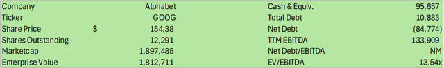 考虑到当前的增长机会,分析师认为谷歌的估值应为每股185美元,相当于2026财年企业价值倍数(EV/EBITDA)的13.55倍。