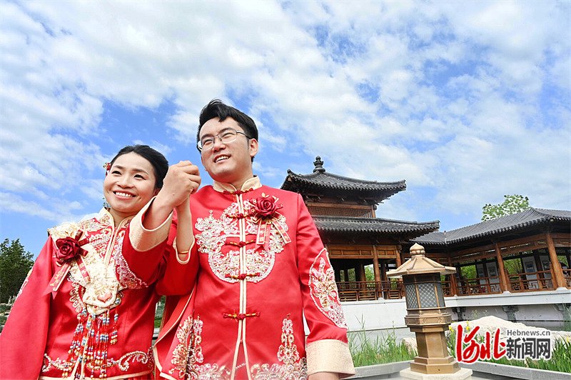 4月27日,“雄安 我爱TA”主题集体婚礼在雄安新区悦容公园举办。25对新人身着中式传统礼服,在未来之城共许爱的承诺。