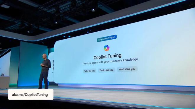 (来源:微软)面向企业用户,微软推出了名为 Copilot Tuning 的新功能。该功能允许企业将自身内部数据快速注入到 AI 代理中,从而打造出“可说话、可思考、可执行”的企业级定制智能体。