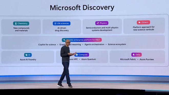 最后,微软在大会上宣布推出一个名为 Microsoft Discovery 的新企业代理平台,以加速科研人员的研发(R&D)速度。