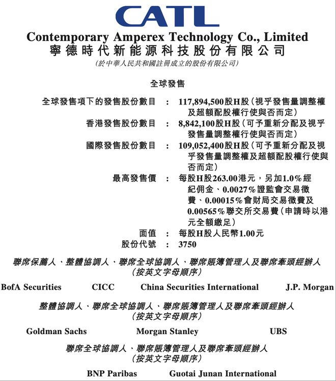 ▲截至发稿前宁德时代H股股价根据此前消息,宁德时代港股最终定价每股263港元(约合人民币242.6元),净筹资353.3亿港元(约合人民币325.9元),有望成为2025年到今天为止,全球最大规模IPO。