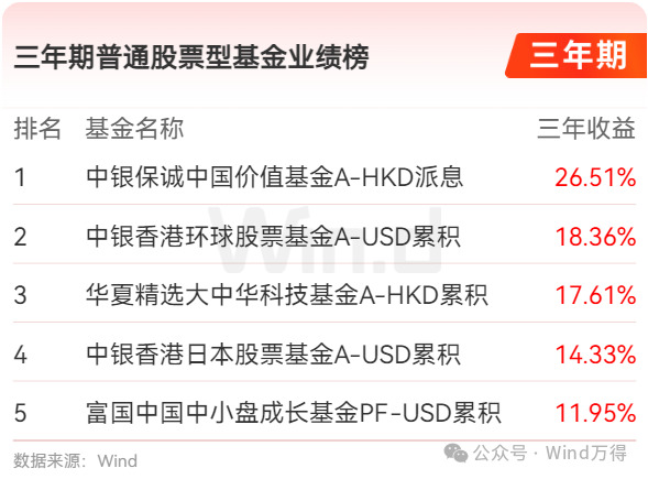 三年期大中华股票型基金业绩榜