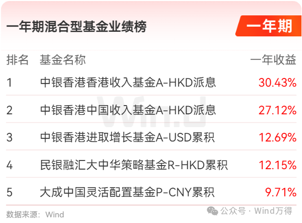 一年期混合型基金业绩榜