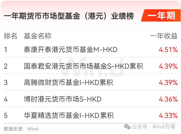货币市场型基金业绩榜(港元)
