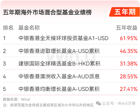 五年期海外市场混合型基金业绩榜