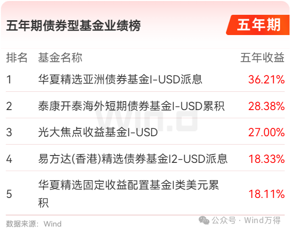 五年期海外市场债券型基金业绩榜