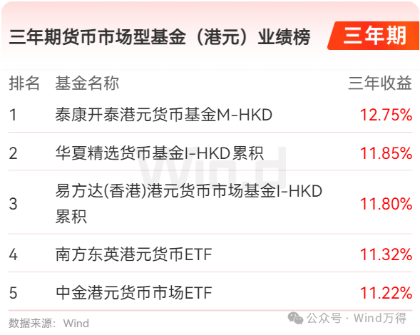三年期货币市场型基金(港元)业绩榜