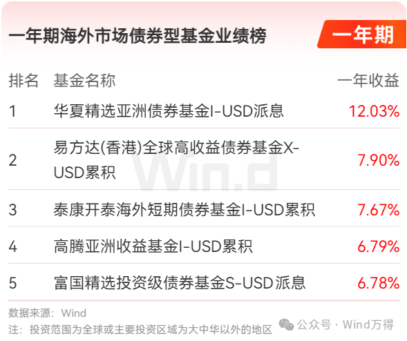 海外市场债券型基金业绩榜