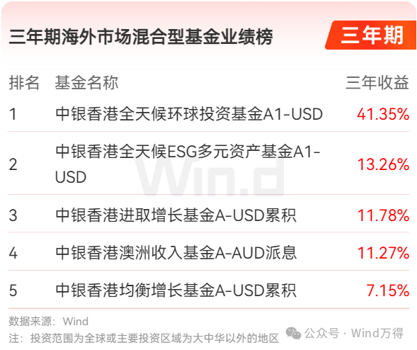 三年期海外市场混合型基金业绩榜