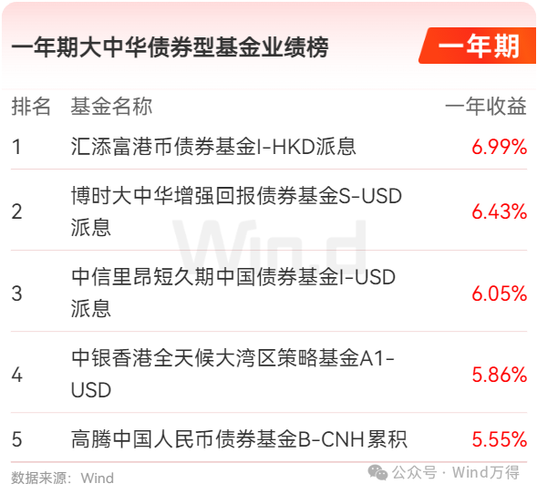 一年期大中华债券型基金业绩榜