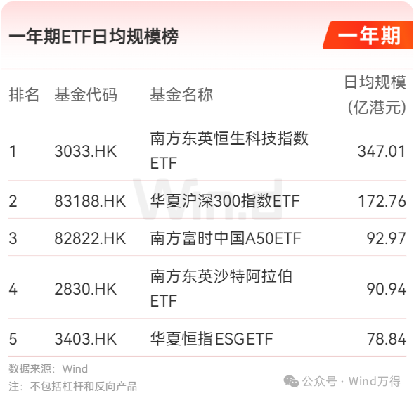 一年期ETF日均规模榜
