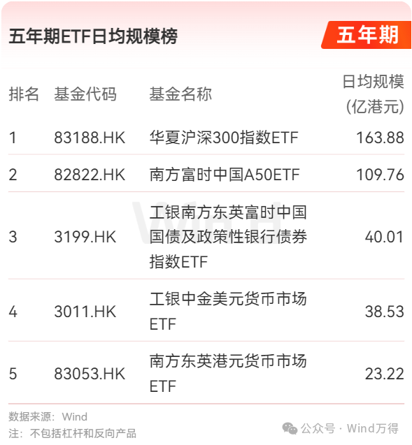 五年期ETF日均规模榜