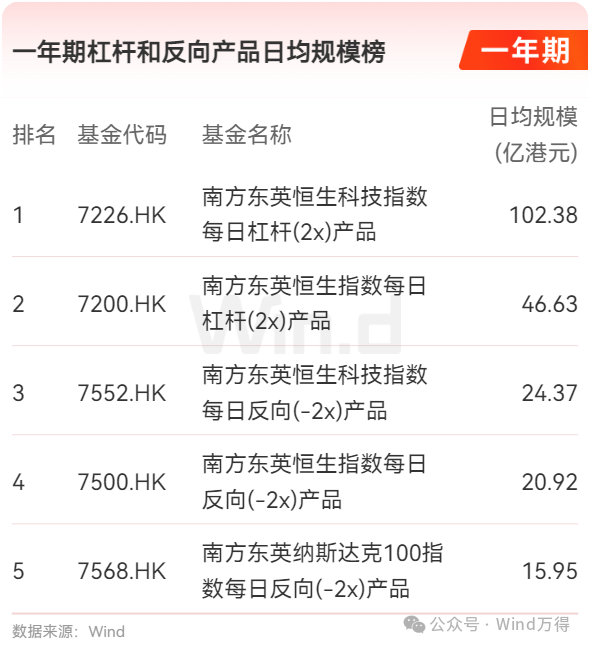 杠杆和反向产品日均规模榜