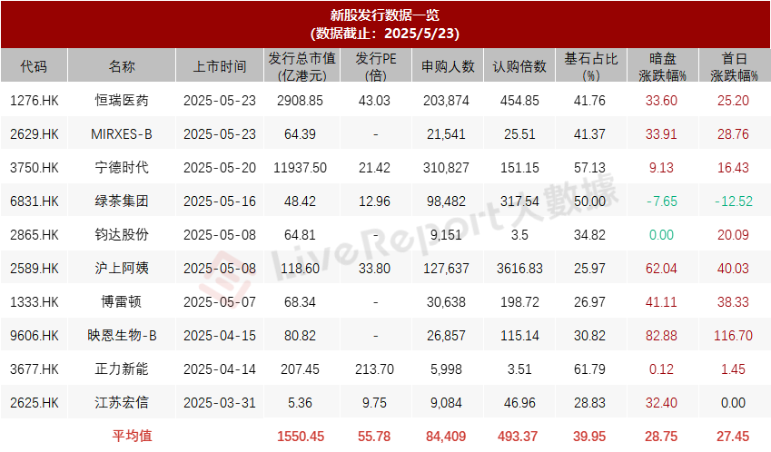 另,已上市的恒瑞医药、MIRXES-B均于5月20日结束招股。