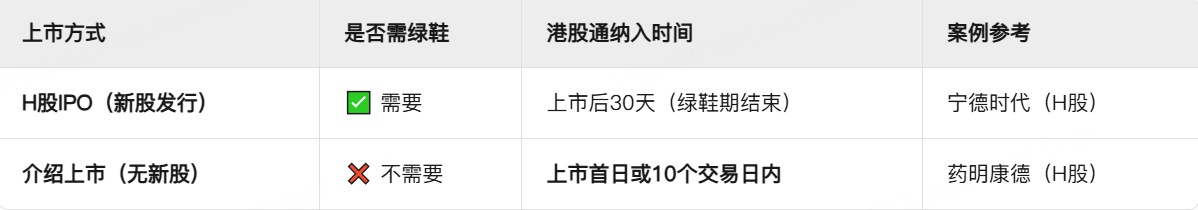 AH股的特殊待遇:A+H股公司因两地监管协同,H股部分可能在A股上市满10个交易日后立即纳入,无需等待绿鞋期。