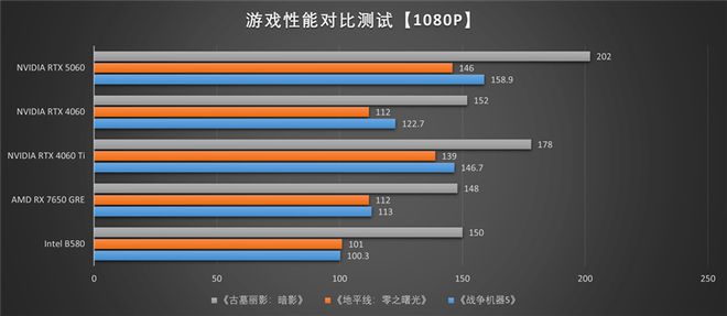 在其他游戏的测试中,索泰RTX 5060 XGAMING OC显卡的性能优势同样明显,即使不考虑DLSS 4等技术,单纯光栅游戏性能也是同档显卡最强,超越上代RTX 4060 Ti,也超越Intel显存更大的B580显卡。