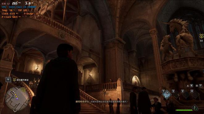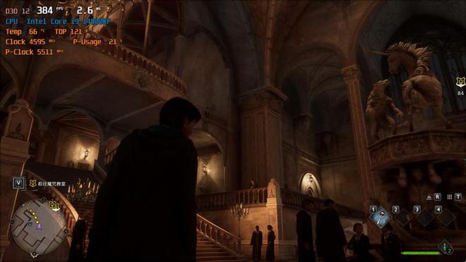 在《霍格沃兹之遗》中,使用超高画质预设,DLSS超分辨率设置为平衡,记录游戏帧数。