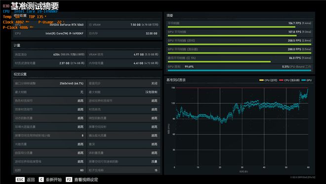 在《战争机器5》中,使用超高画质进行测试,2K分辨率下平均帧率为106.7,1080P分辨率下平均帧率为158.9。