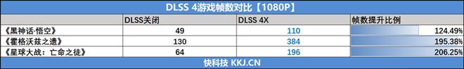 《星球大战:亡命之徒》在开启DLSS 4最高的4X级别多帧生成时,在2K分辨率下的测试帧率为161,1080P分辨率下测试帧率为199。