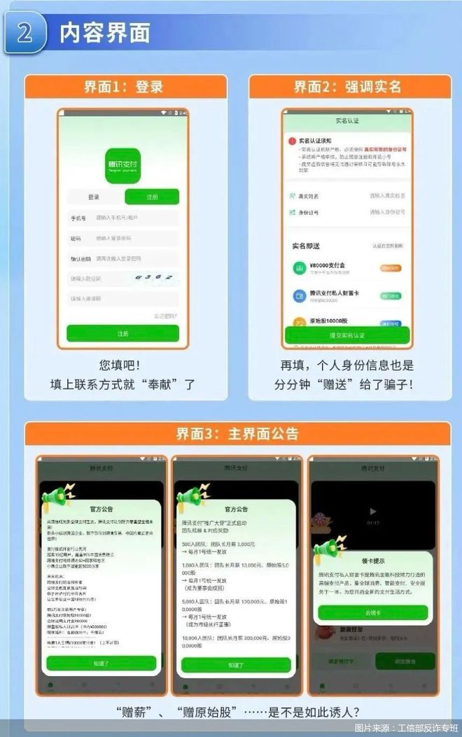 为了吸引更多参与者,"腾讯支付"App采用"拉人头"的方式邀请人员,并设置了高额奖励,用赠送虚拟的"支付金""财富卡余额""原始股"等迷惑受害者,例如创建500人团队,团队长可获得月薪3000元;创建10000人团队,团队长可获得月薪30万元和原始股奖励,最终精准实施诈骗。
