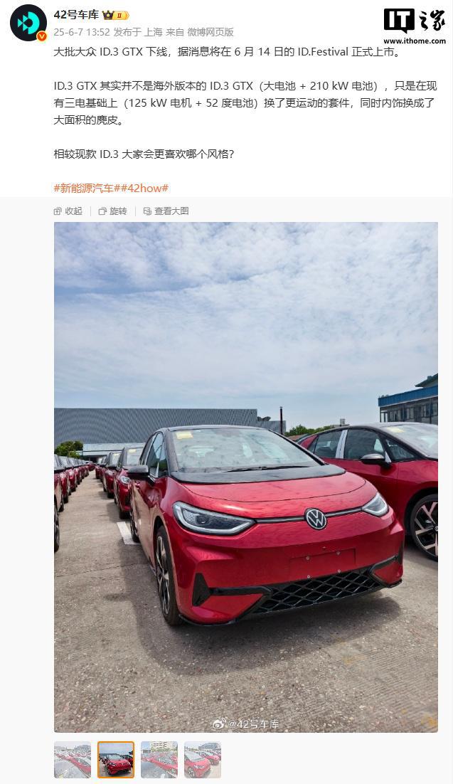 大众ID.3 GTX大量下线,预计于 6 月 14 日 ID.Festival 正式上市