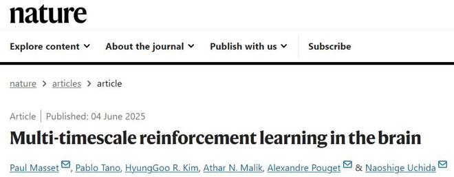 2.Masset, P., Tano, P., Kim, H.R.et al. Multi-timescale reinforcement learning in the brain.Nature(2025). https://doi.org/10.1038/s41586-025-08929-9