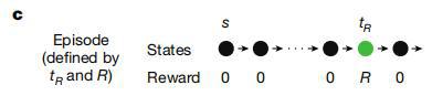 (来源:Nature)R 和 tR 的数值会在不同的回合之间变化,但在同一回合内保持不变。每个回合由在初始状态(s)呈现的提示信号开始。