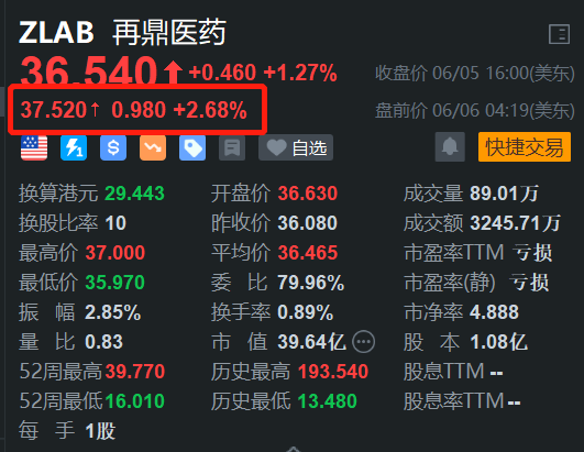 美股异动丨再鼎医药盘前续涨近3% 此前2日累涨超17% 美银升其目标价至38.2美元