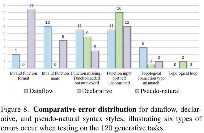 通过对 120 个失败案例的归因分析发现,28% 的错误源于参数范围越界,主要体现在跨模态任务中的单位转换问题;22% 属于模态不匹配错误,多发生在未明确指定输入输出类型的场景中;15% 由于函数缺失导致,这反映了现有函数库仍需扩展。