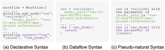 框架设计的核心思路在于对生成任务本质的解构:任何复杂的多模态生成过程,本质上都可以拆解为“做什么”(函数)、“怎么做”(参数)和“执行顺序”(拓扑)三个要素。基于这样的见解,研究提出了 -Language,这是一种正式表示方法,系统地捕捉生成任务的这三个基本组成部分。此外,研究还介绍了一种无需训练的推理引擎,它利用预训练的语言模型作为基础,从输入指令和指定的关键函数中得出符号表示。