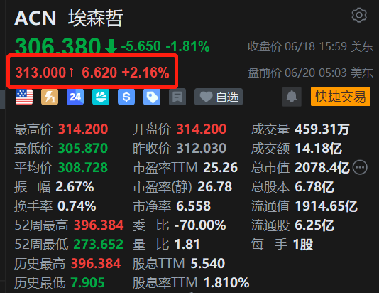 美股异动|IT服务提供商埃森哲盘前涨超2% 即将发布财报
