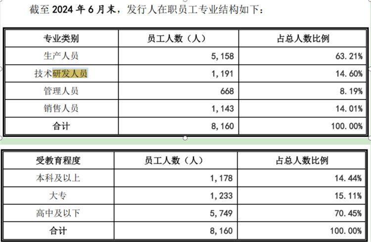 另外值得注意的是,截至2024年6月末,嘉立创拥有技术研发人员1191人,占员工总数的14.6%。同期该公司本科及以上学历的员工总数为1178人。由此可见,截至2024年6月末,嘉立创有13名技术研发人员的学历或仅为大专或高中及以下学历,其研发能力令人生疑。
