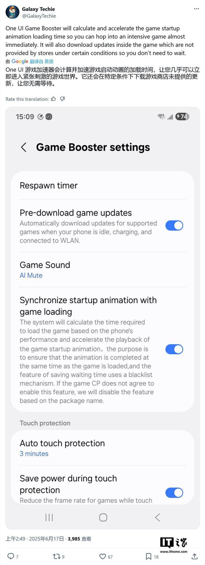 IT之家 6 月 19 日消息,消息源 GalaxyTechie 于 6 月 17 日在 X 平台发布系列推文,曝料称三星将在 One UI 8 更新中,升级 Game Booster ,通过预下载更新与动画同步,进一步加速游戏体验。