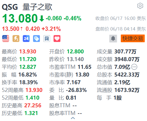 美股异动丨量子之歌盘前涨超3% 获花旗上调目标价