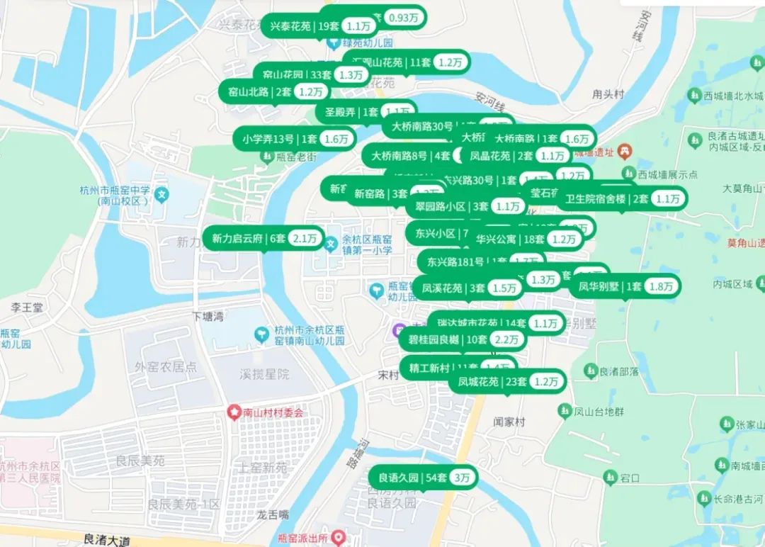 闲林、老余杭、瓶窑,大量二手房单价不到2万/㎡。