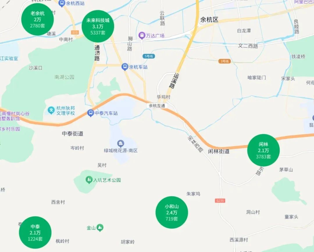 那么,这套房子大概率在未来科技城往南的闲林、老余杭等板块。