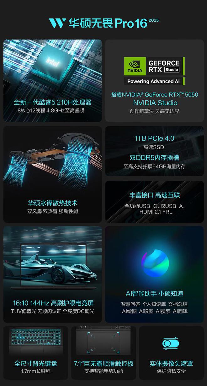 华硕无畏 Pro16 笔记本上线 RTX 5050 款:酷睿 5 210H,5999 元