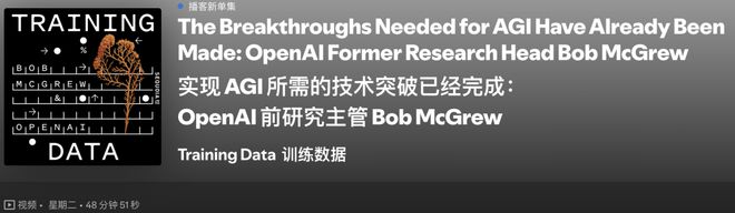 Bob McGrew认为推理是AGI缺失的关键拼图。