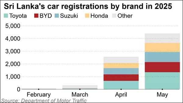 在这波进口潮中,不仅传统日系品牌重回斯里兰卡,包括比亚迪在内的几家中国电动汽车品牌也开始强势进入市场。4月7日,比亚迪开启斯里兰卡首批新能源汽车交付。5月晚些时候,五菱、BAW和长安汽车旗下电动车品牌深蓝汽车也陆续进入斯里兰卡。
