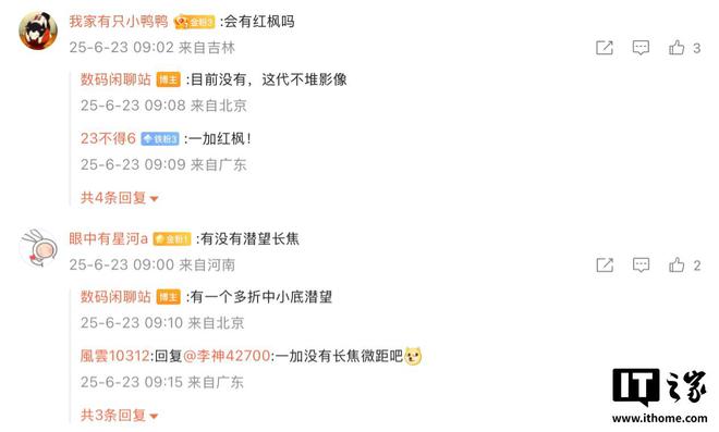 此外,该博主还在评论区透露该手机“不堆影像”,同时预计不搭载长焦微距。