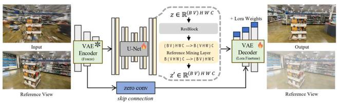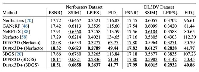 Difix3D+提出了一个突破性的视角:将预训练 2D 扩散模型的视觉先验引入 3D 渲染流程,将其作为 “图像修复器”,精准去除神经渲染伪影。