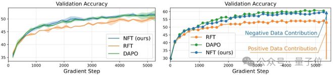 △架构图NFT在Qwen-7B(左)和32B模型(右)上性能表现及对比研究团队还发现NFT算法在不损失性能条件下有利于模型熵增加,鼓励模型充分探索。