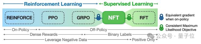 NFT算法指出并弥合了强化学习和监督学习的本质差异,这暗示两套机器学习理论存在深层联系,可以帮助研究者重新定位、思考和放大强化训练的本质优势。