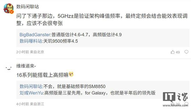 博主@数码闲聊站 今日爆料,SM8850 样片频率流出了,最高在 5GHz±。该博主还称“问了下通子那边,5GHz± 是验证架构峰值频率,最终定频会结合能效表现调整,应该不会很夸张”。