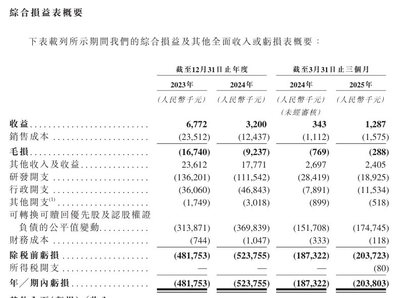 财务方面,2023年、2024年及2025年1-3月,亦诺微医药实现收入分别约为677.2万元、320万元、128.7万元人民币;同期年内亏损分别约为4.82亿元、5.24亿元、2.04亿元人民币。