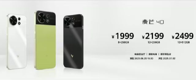 麦芒40已于当天15:30开启预售,7月2日正式开售,价格档位在1999-2499元。